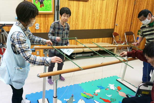 利用者の中でも、比較的動ける方々を中心に、生活支援、運動、機能訓練、散歩、並びに創作活動、レクリェーション、個別外出などを取り入れ、個々が充実し安定した生活が送れるように支援をしています。