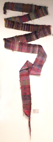 講評 さをり織りで織られたこの作品には、それぞれの糸の色彩がハーモニーを奏で美しい音楽を感じさせます。 |
