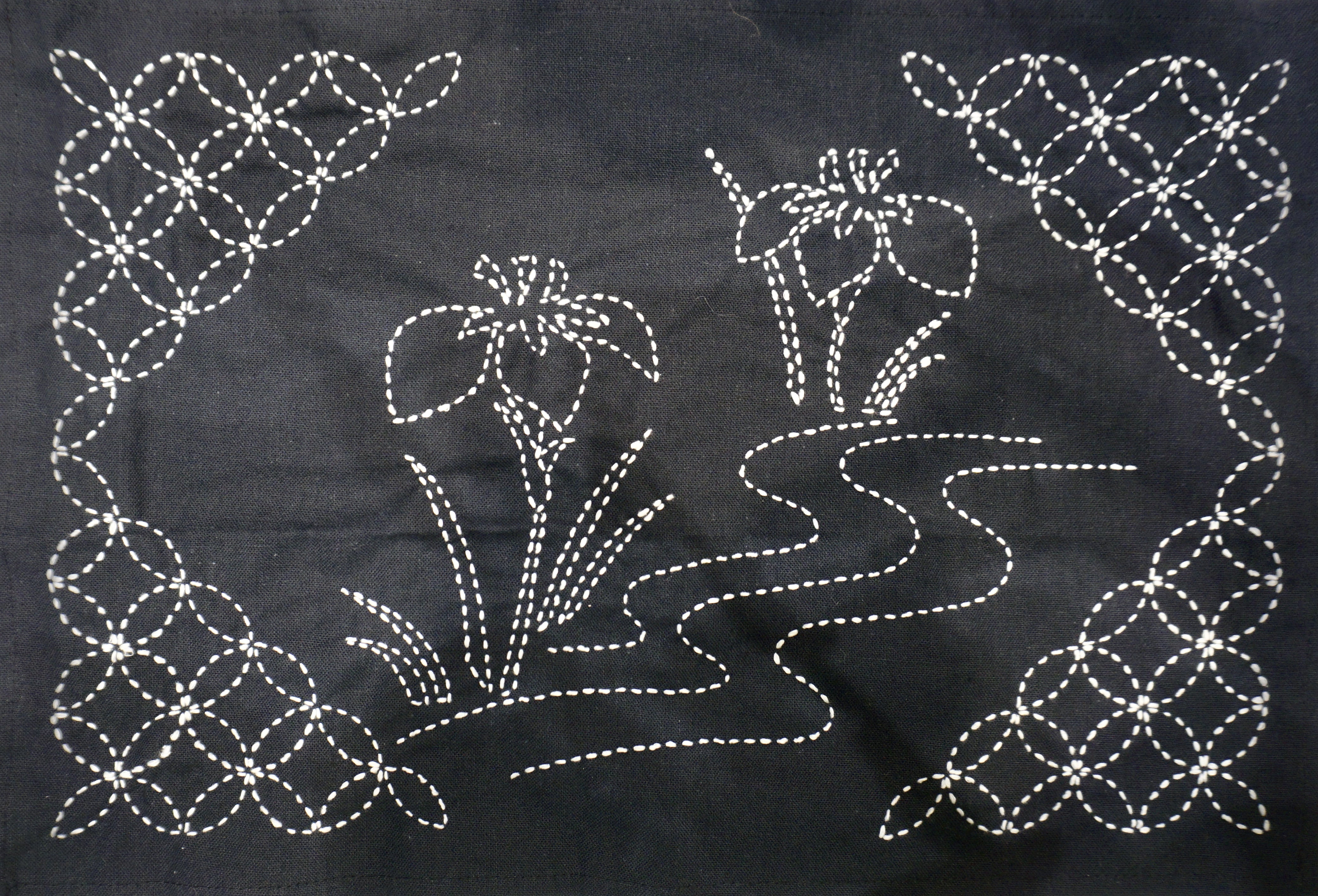 | ● 工芸の部 銀賞 題名「刺し子 ランチョンマット」(工芸) 白石陽光園 海川 すみ子 作 |