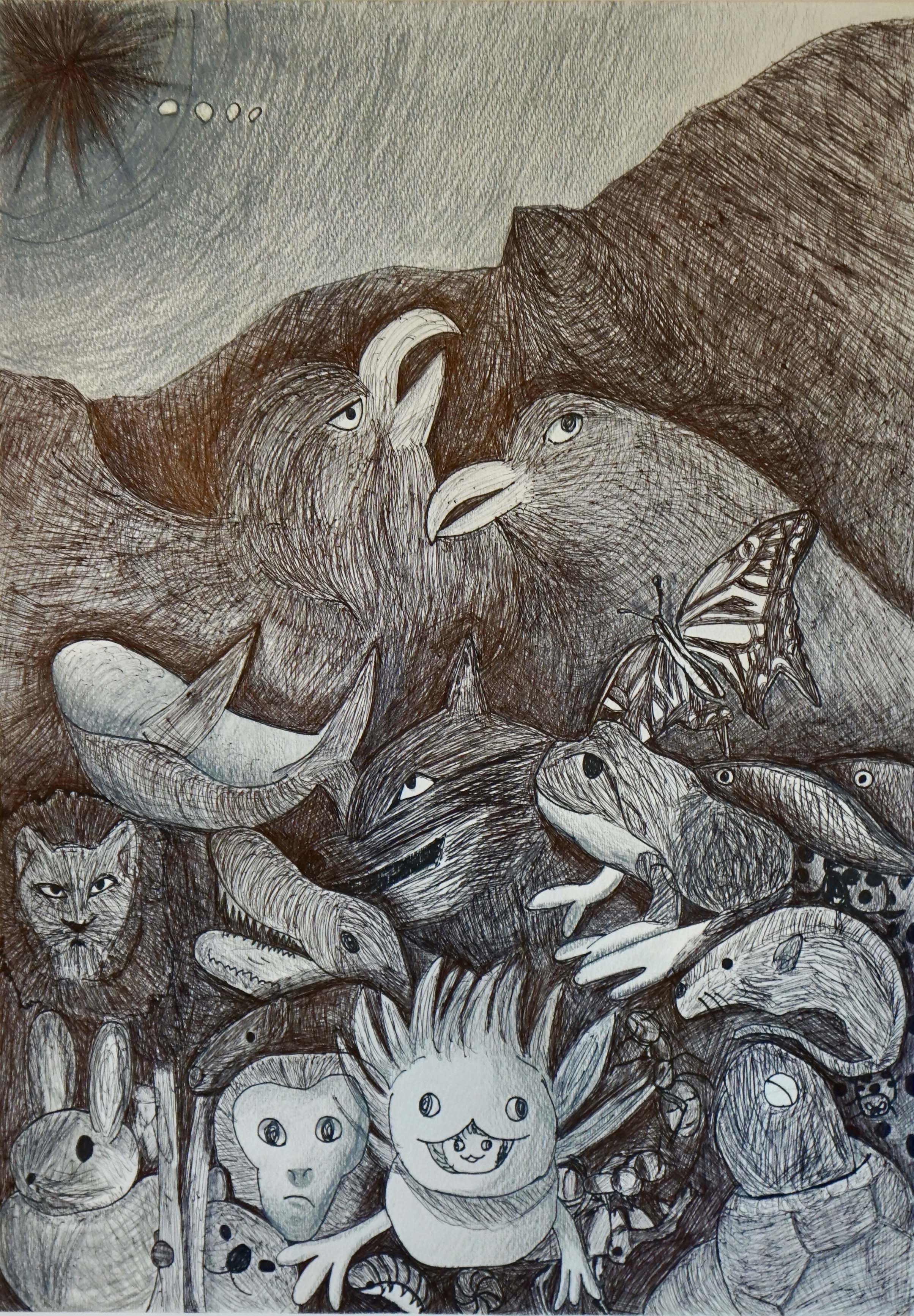 ● 絵画の部 銅賞 題名「生き物」(絵画) 仙台市立 折立中学校 若松 風愛 作 |